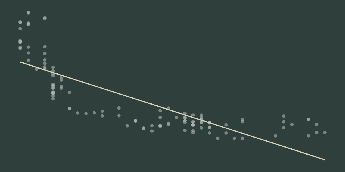 R^2 of 0.007, a slop of -0.1649, and very high P-value mean this relationship is weak and statistically insignificant.